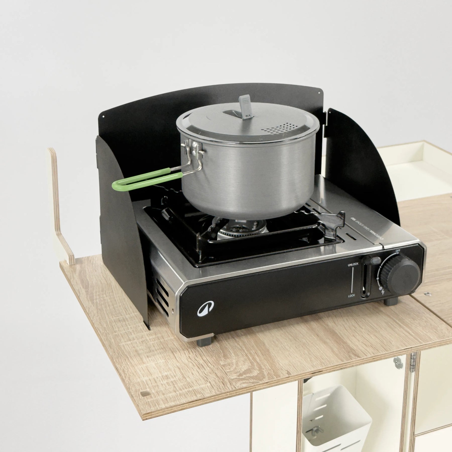 A compact camping kitchen in one box.